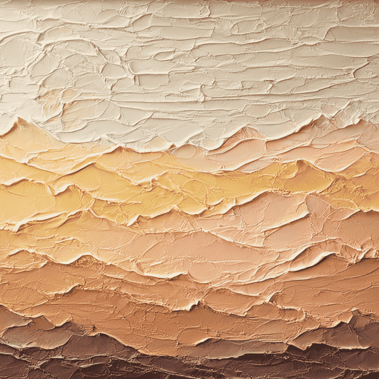 Genießen Sie die ruhige Schönheit von Canyon Light , wo strukturierte Schichten aus warmem Gold, Bernstein und Kupfer das ruhige Leuchten eines Wüstensonnenuntergangs einfangen. Dieses Gemälde erinnert an die Stille großartiger Naturlandschaften und lädt Sie ein, innezuhalten, zu atmen und die Wärme des ausklingenden Tages zu spüren.