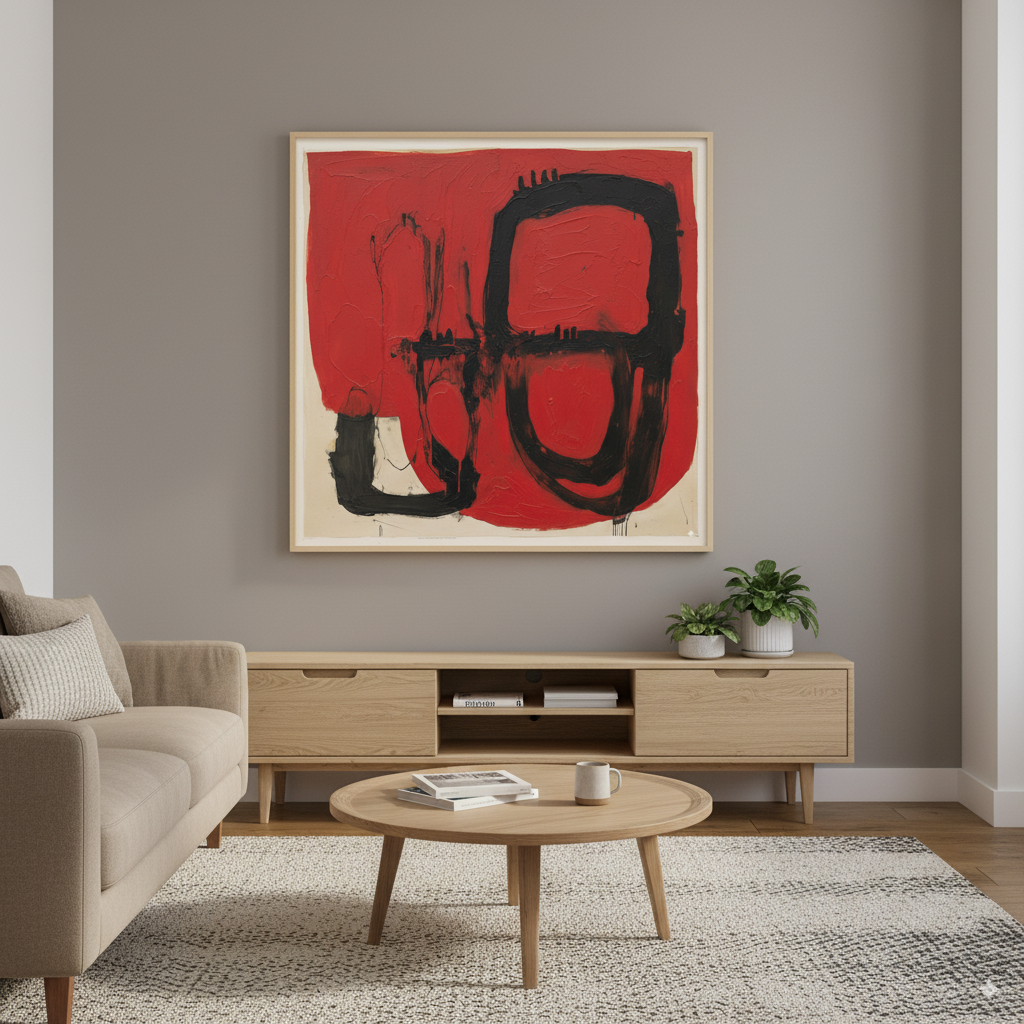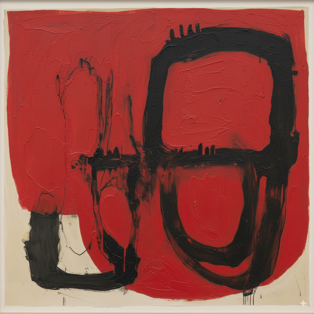 „Ceremonial Forms“ kanalisiert die rohe Energie des abstrakten Expressionismus in ein eindrucksvolles Zusammenspiel dunkler Obsidianstriche auf einem leuchtend purpurnen Feld. Das Werk fängt die Essenz von Ritual und Präsenz ein, wobei jede Geste bewusst und jeder Strich mit Bedeutung erfüllt wirkt. Ein Statement für alle, die Kunst als visuelle und emotionale Zeremonie begreifen.