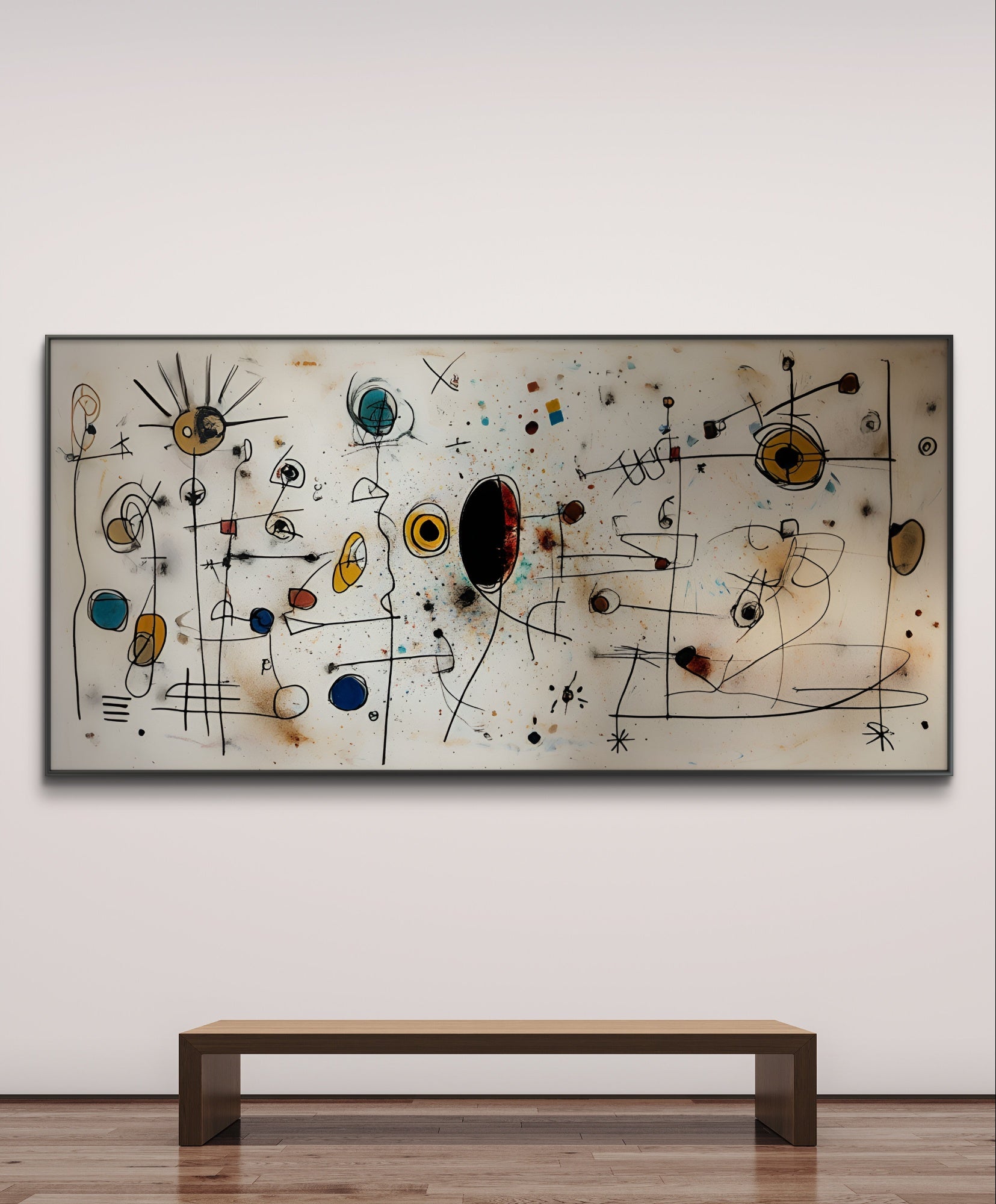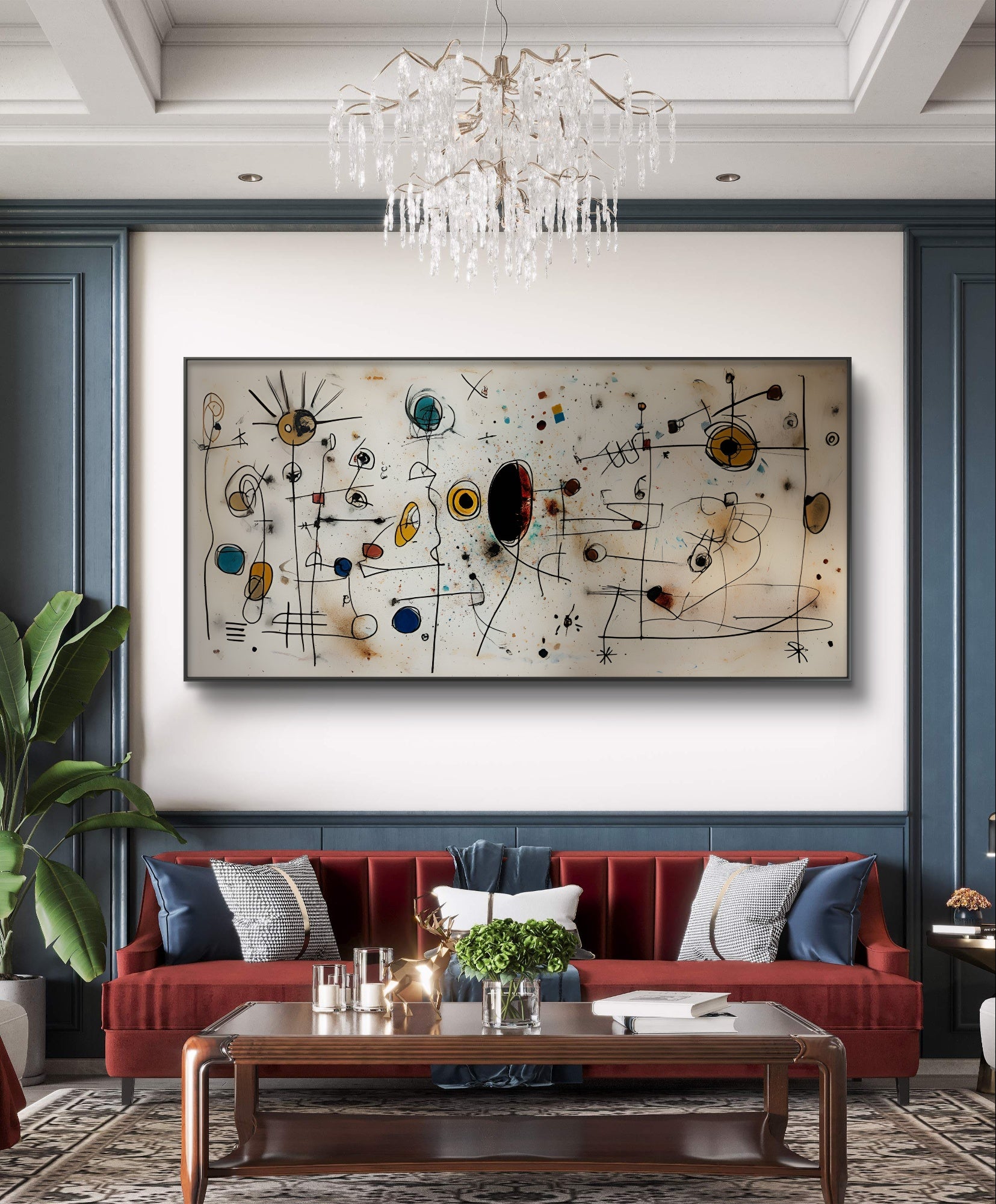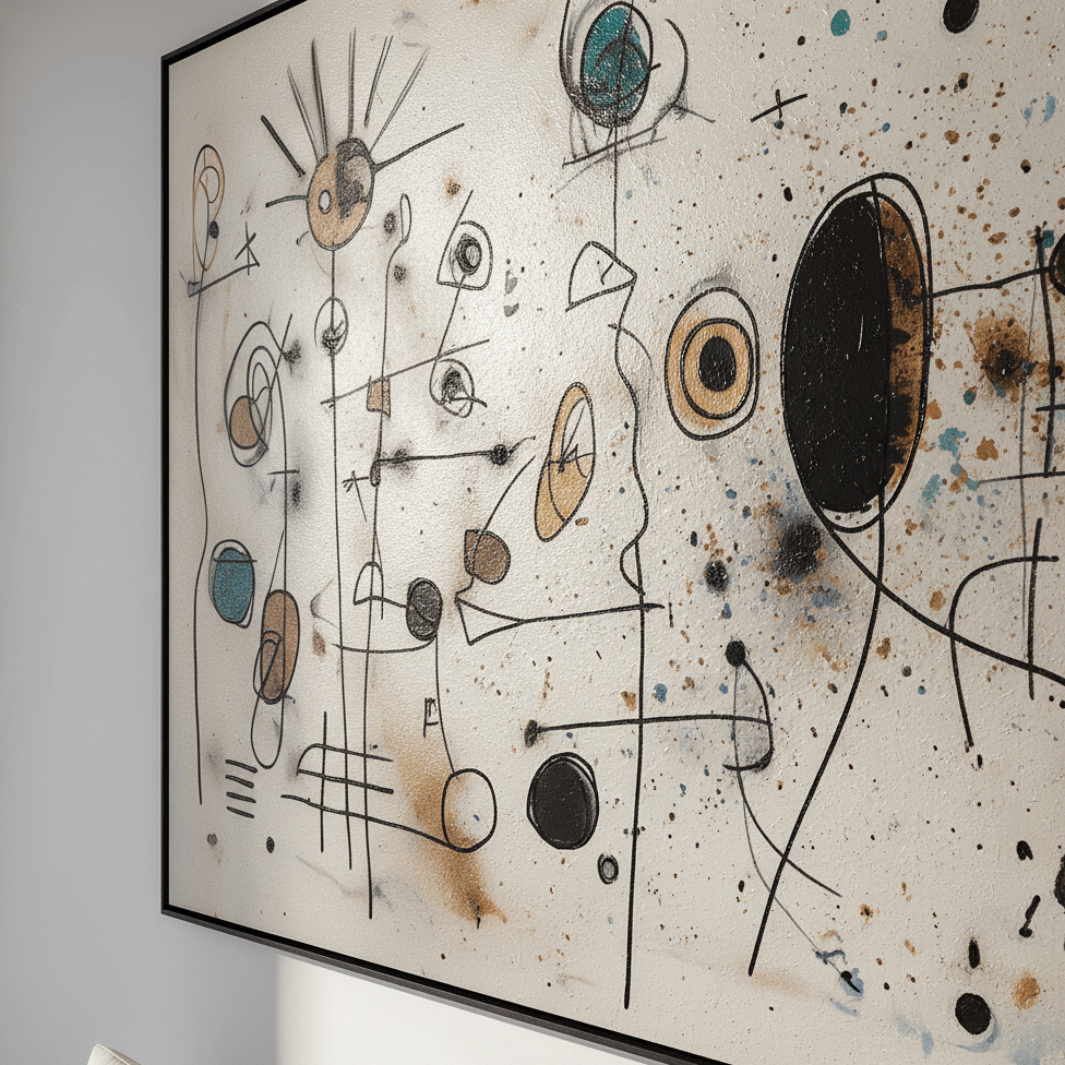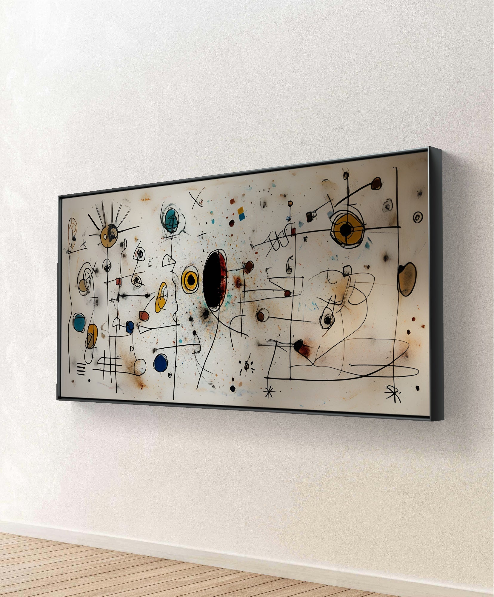 „Echoes in Space“ entfaltet sich wie eine poetische Karte des Kosmos, auf der zarte Linien und lebendige Formen über eine grenzenlose Leinwand schweben. Diese abstrakte Komposition lädt zum Nachdenken ein und fängt den stillen Dialog zwischen Sternen, Planeten und den unendlichen Möglichkeiten des Universums ein.