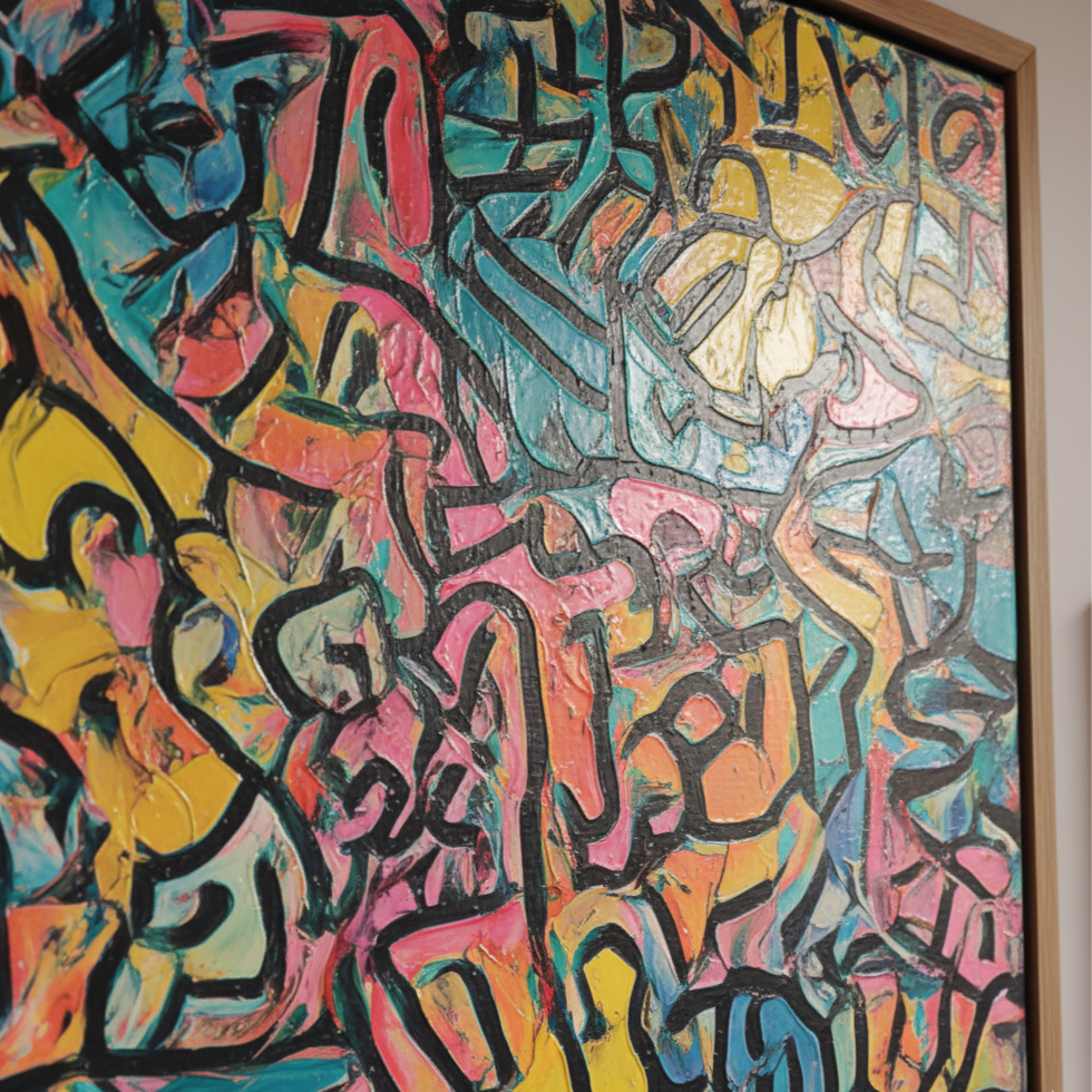 „Mosaic of Energy“ ist eine lebendige Feier von Bewegung und Verbundenheit. Jeder Pinselstrich verwebt Farbe und Rhythmus und formt einen abstrakten Tanz aus Formen, der Vitalität ausstrahlt. Das Kunstwerk fängt den Puls des Lebens selbst ein, fragmentiert und doch vereint, chaotisch und doch harmonisch, und lädt Sie ein, die verborgene Energie zu spüren, die durch die Zwischenräume fließt.