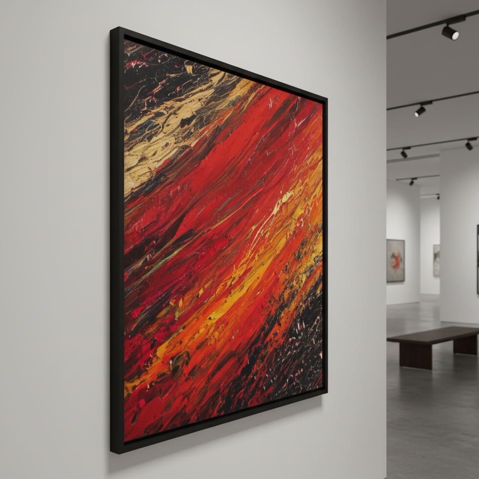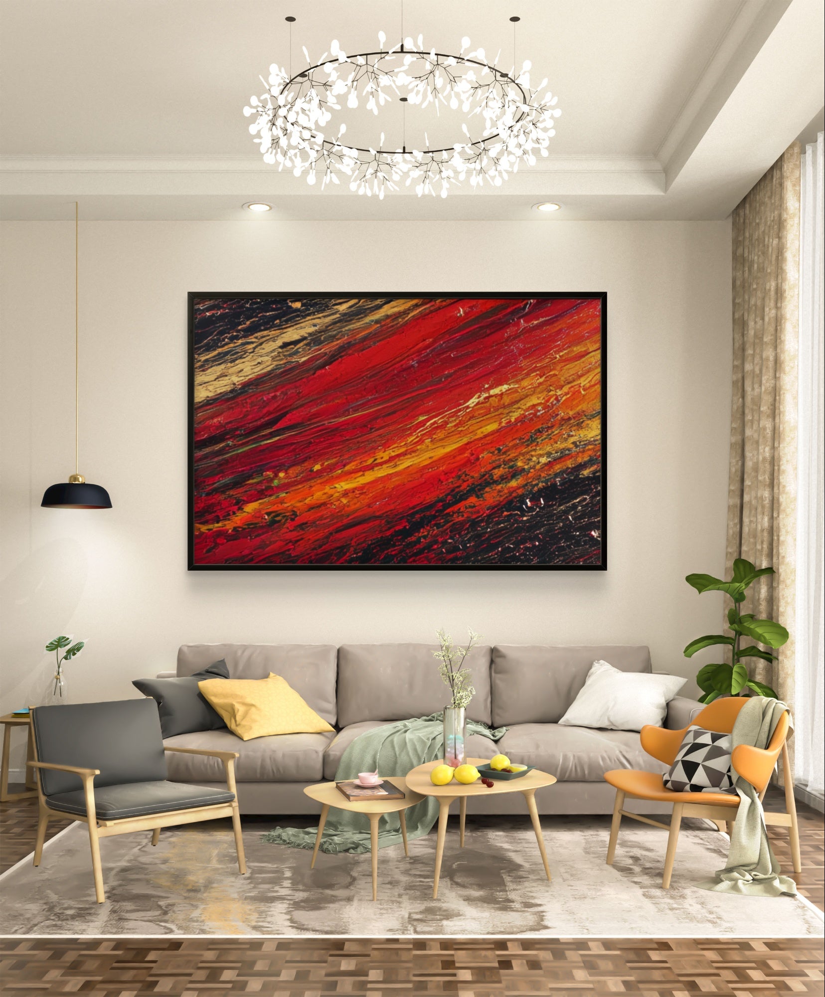 „Passion Ripples“ fließt mit ungezügelter Energie, wobei Wellen aus Purpur und Gold in kräftigen, strukturierten Strichen über die Leinwand fegen. Dieses Kunstwerk fängt die Bewegung von Verlangen und Vitalität ein und hinterlässt Spuren von Emotionen, die die Sinne entfachen. Ein eindrucksvolles Werk, das Kraft, Wärme und Intensität ausstrahlt.