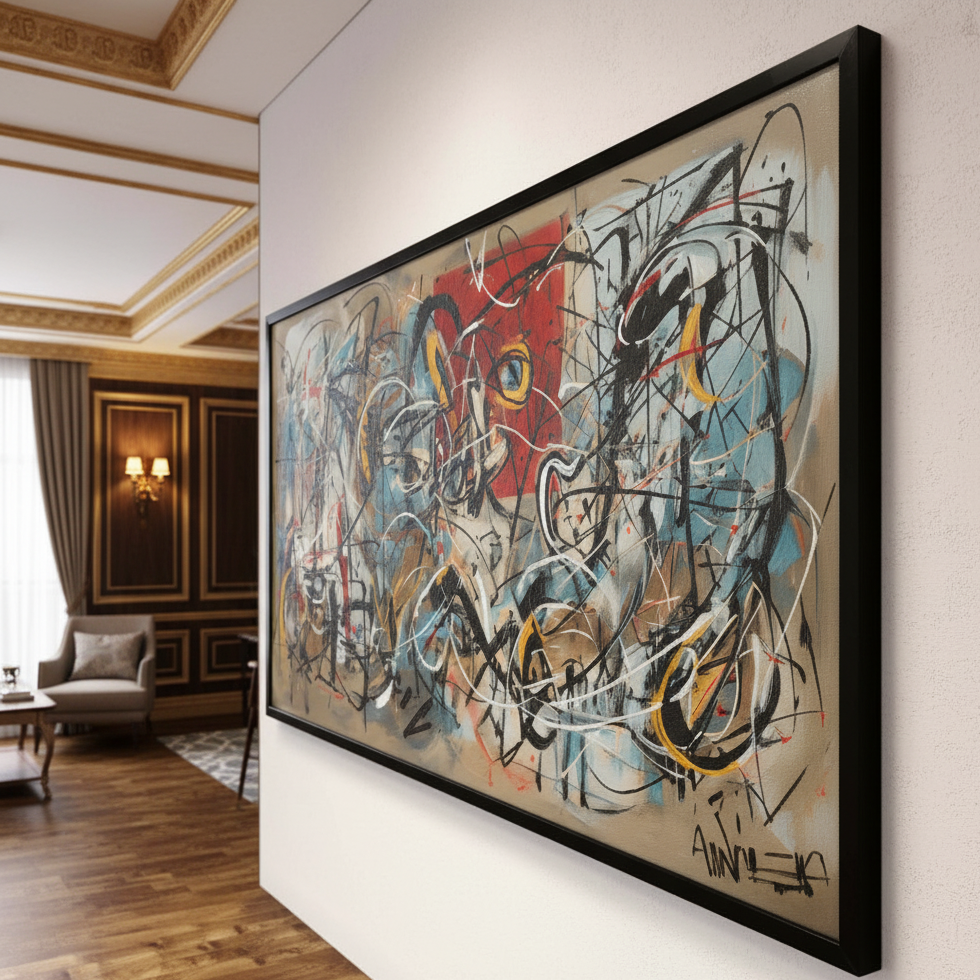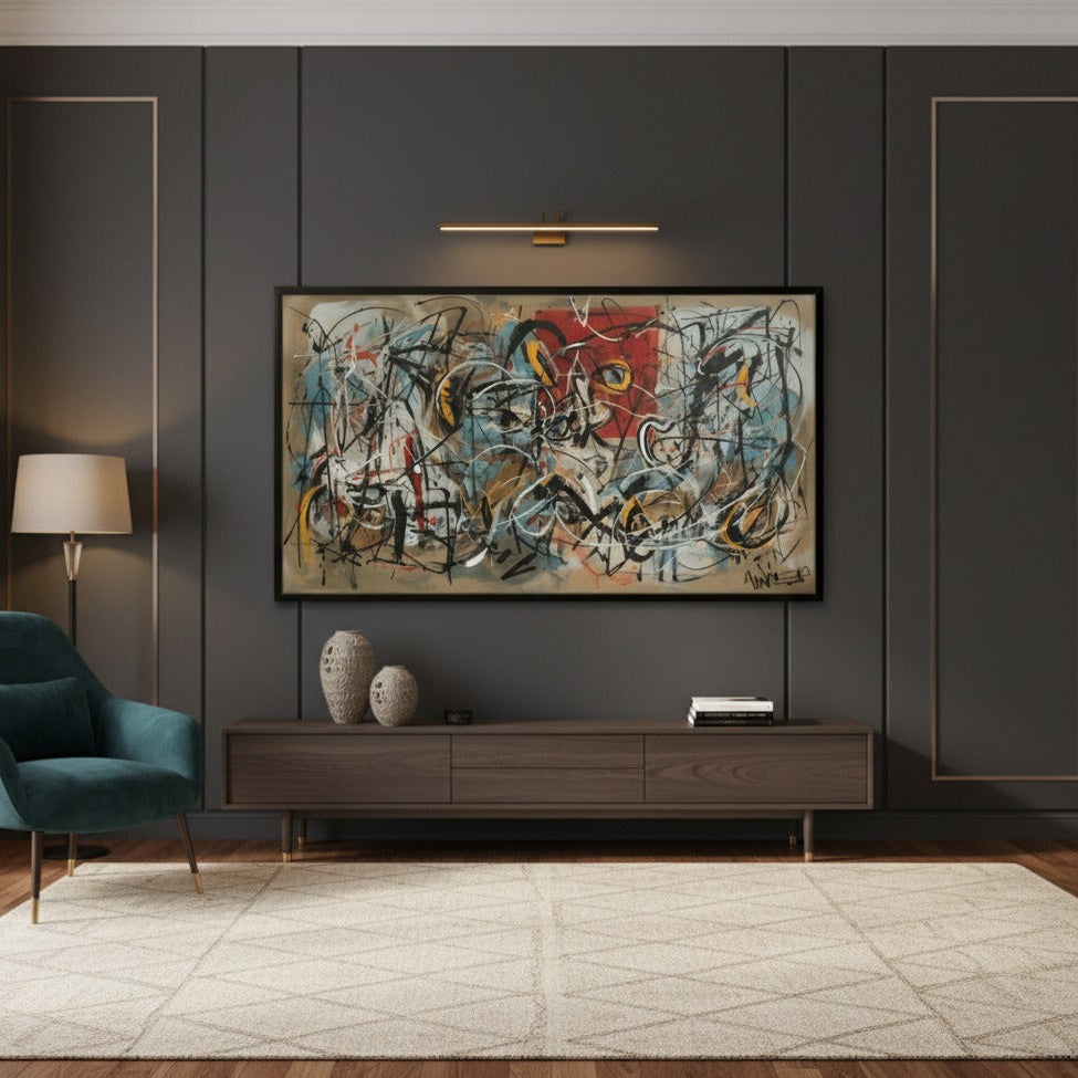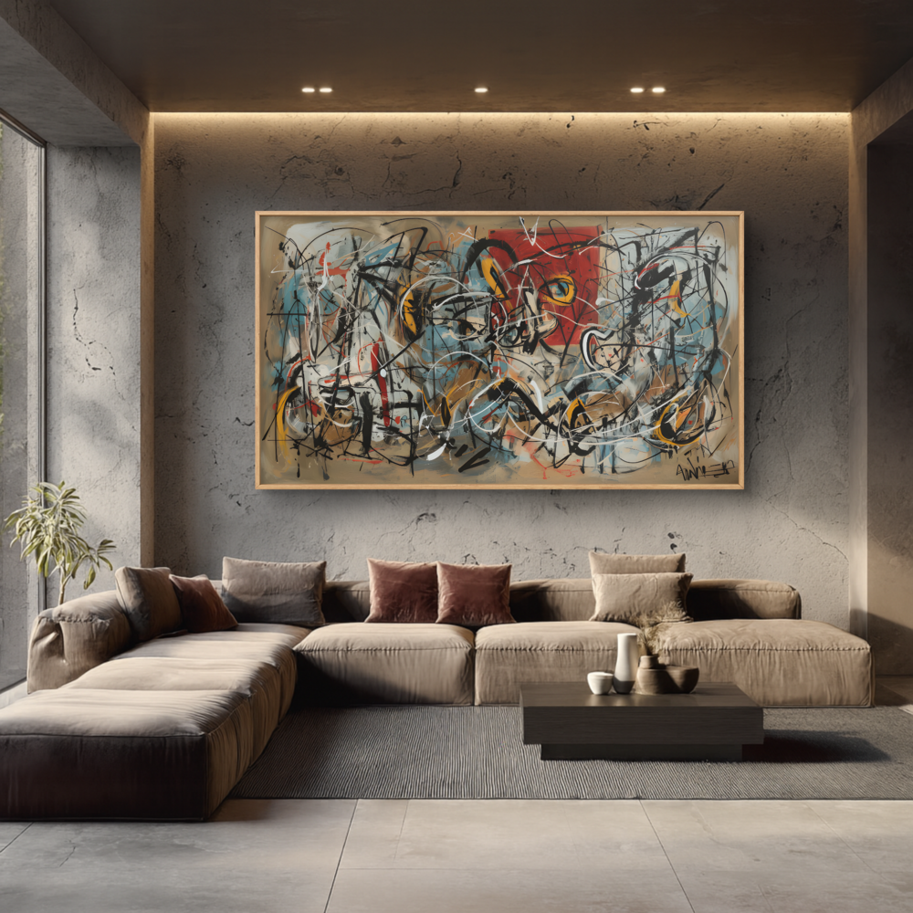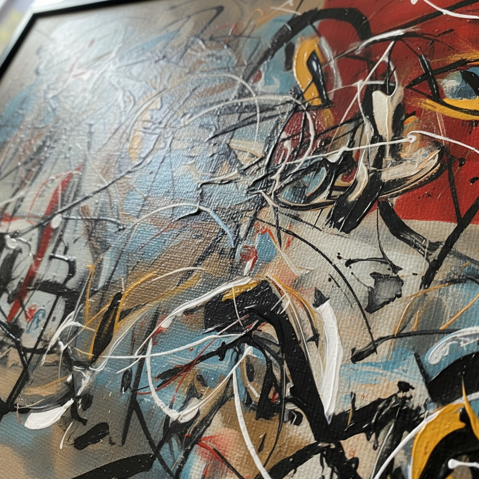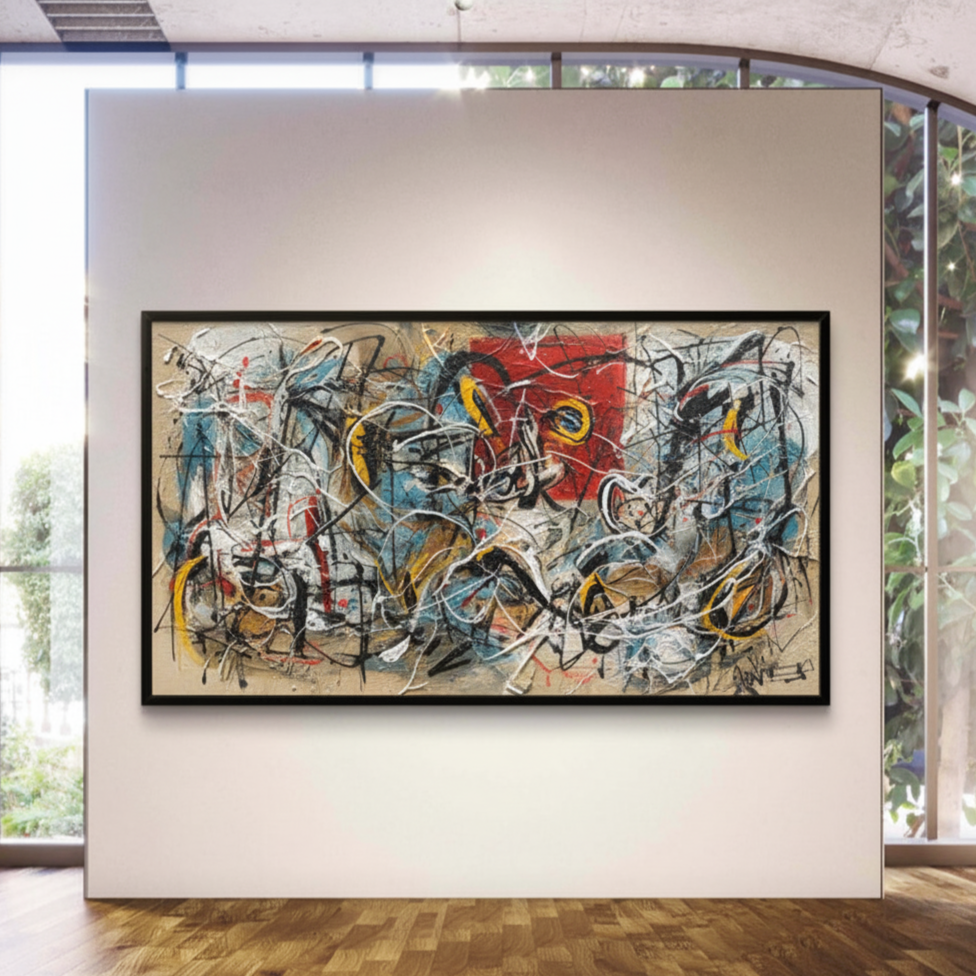 Ein Wirbelwind aus Energie und Emotionen, eingefangen in kräftigen Strichen und verschlungenen Linien. Perfect Storm verkörpert die rohe Kraft der Bewegung, wo Chaos und Harmonie in einem Tanz aus Farbe, Form und ungezügeltem Ausdruck aufeinanderprallen.