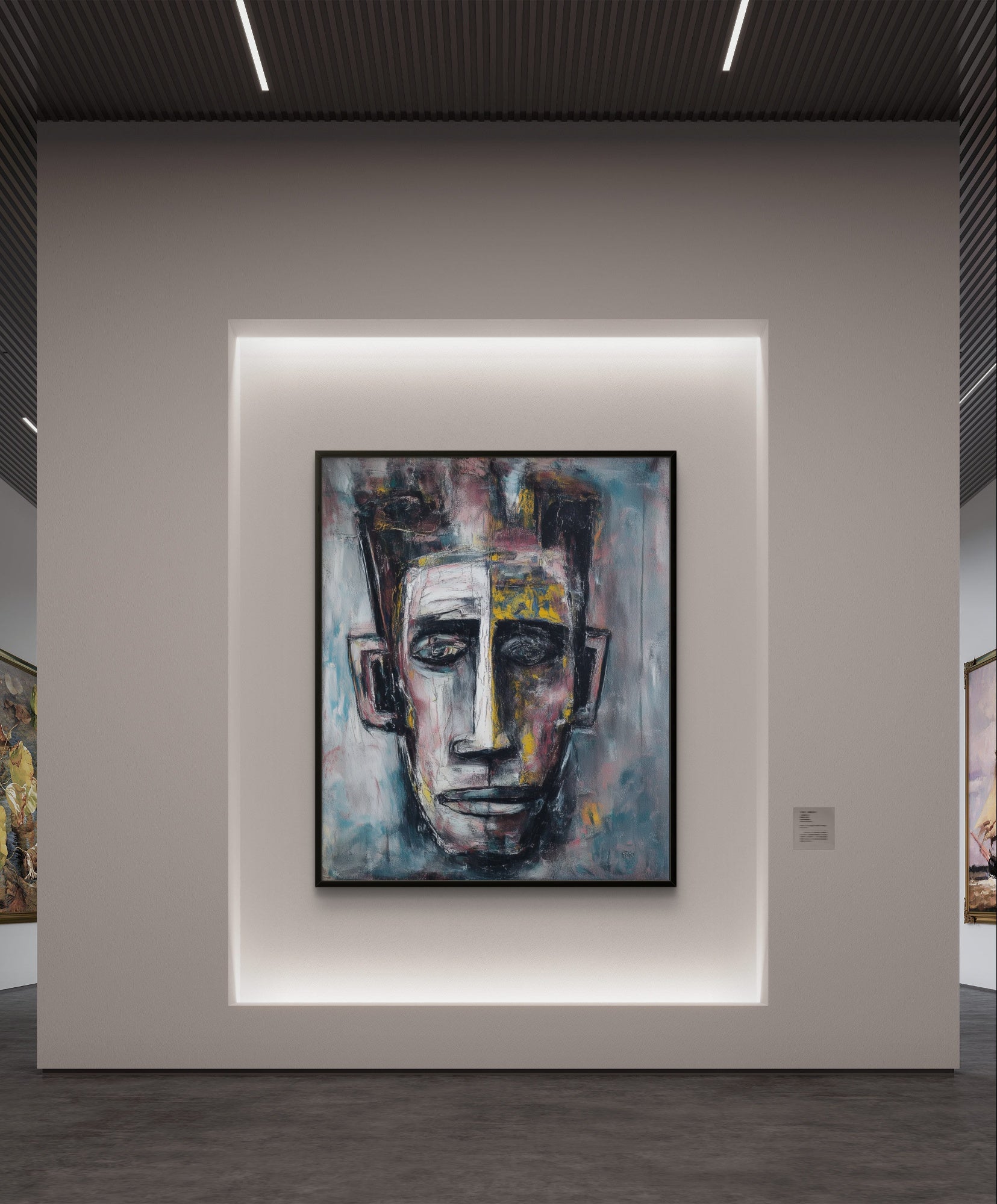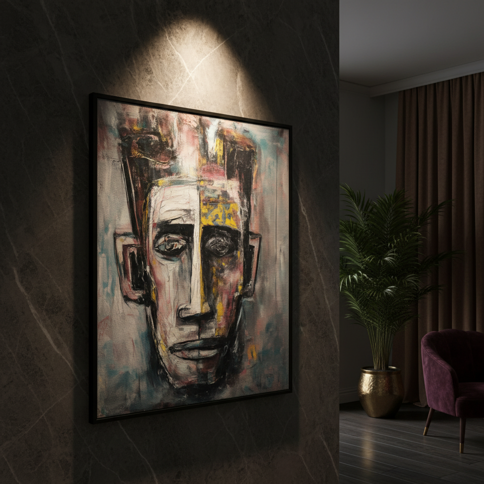 Der Zuhörer verkörpert die stille Kraft der Präsenz. Mit kräftigen Strichen und gedämpften Tönen spiegelt dieses Porträt eine Figur wider, die die Welt schweigend in sich aufnimmt und ohne Worte Widerstandsfähigkeit und Weisheit bietet. Eine zeitlose Erinnerung daran, dass wahre Stärke oft in der Stille liegt.