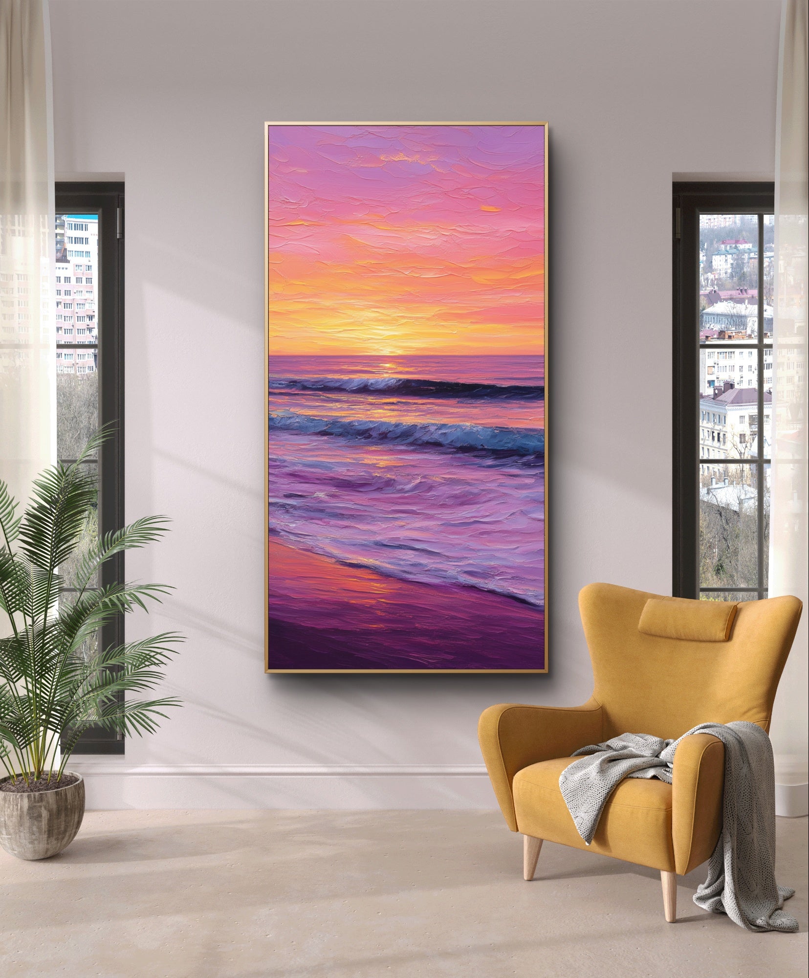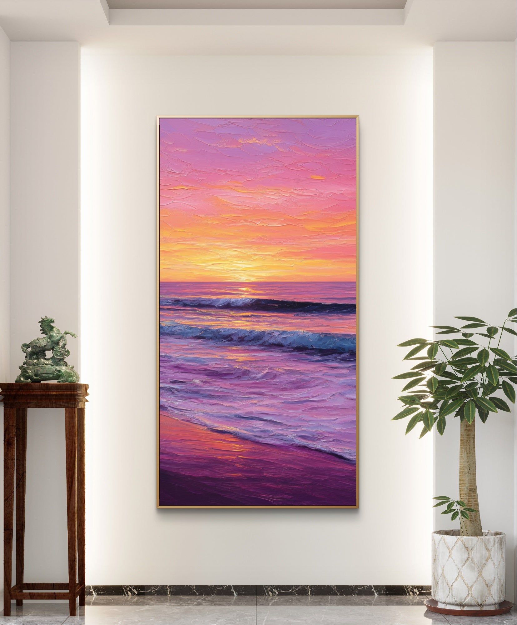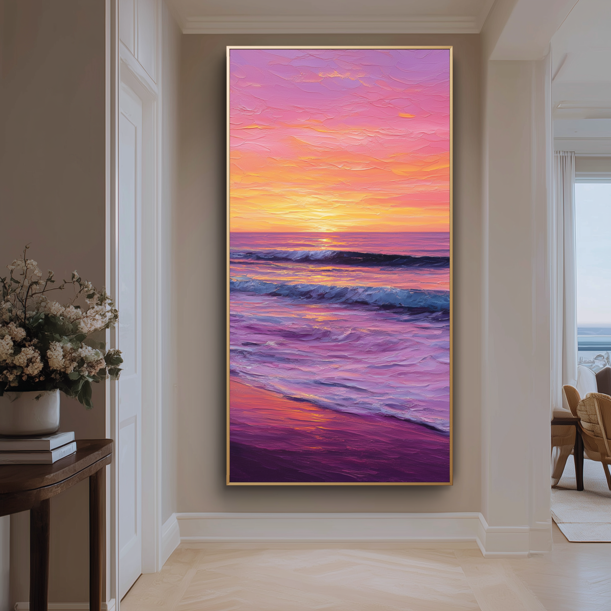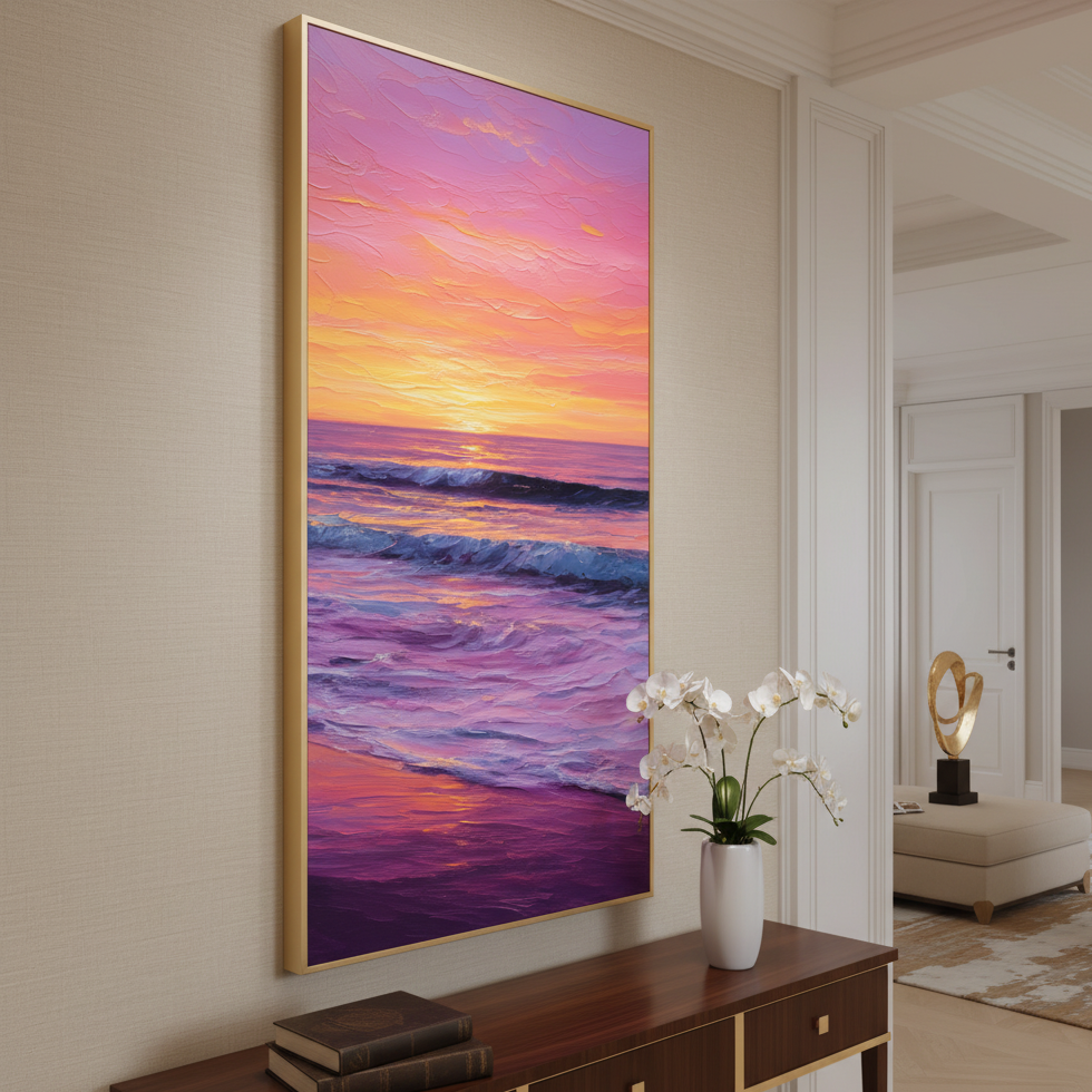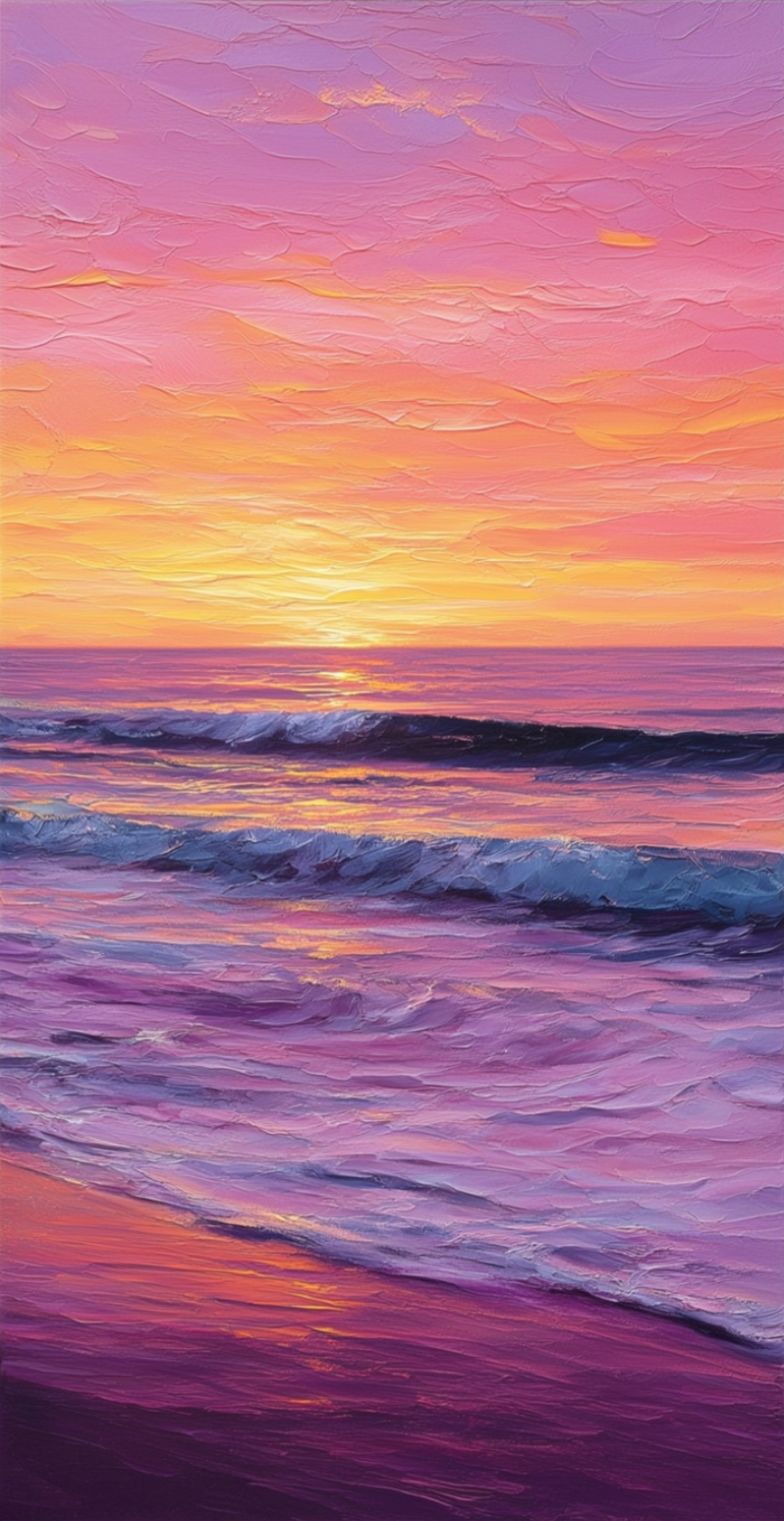 „Tomorrow's Promise“ strahlt Freude und Gelassenheit aus und fängt die Wärme eines Sonnenuntergangs ein, der mit den Wellen verschmilzt. Seine lebendigen Farben spiegeln Hoffnung, Erneuerung und die Schönheit eines Neuanfangs wider. Dieses Kunstwerk verwandelt jeden Raum in einen Ort unbeschwerter Romantik und erhebender Energie.