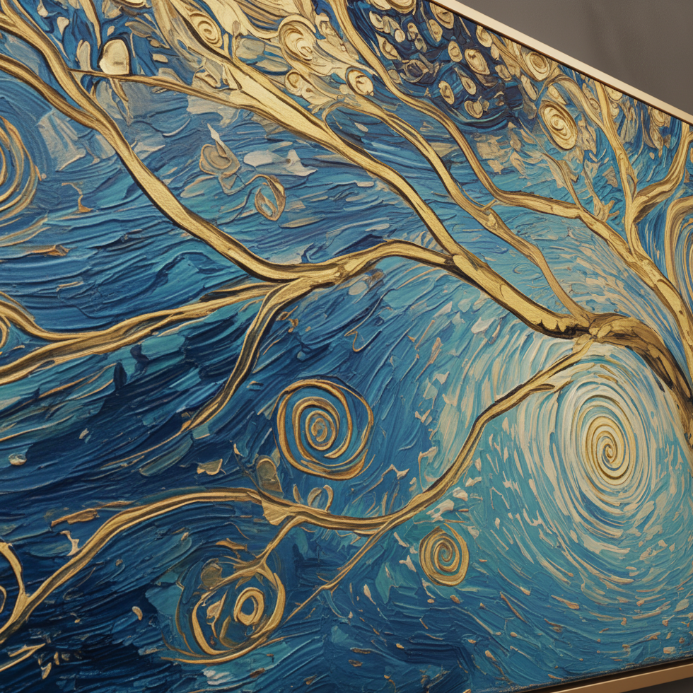 „Tree of Dreams“ fängt die Harmonie zwischen Natur und Fantasie ein, wo sich goldene Zweige in den unendlichen Himmel strecken. Seine wirbelnde Energie weckt Wachstum, Hoffnung und die grenzenlose Schönheit eines Neuanfangs.